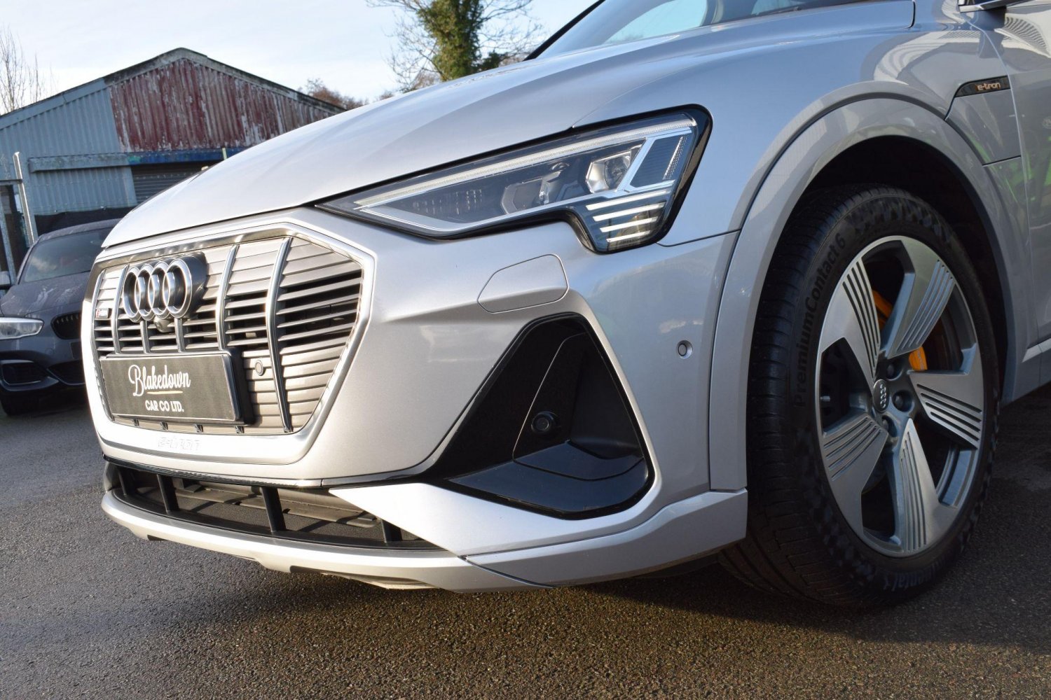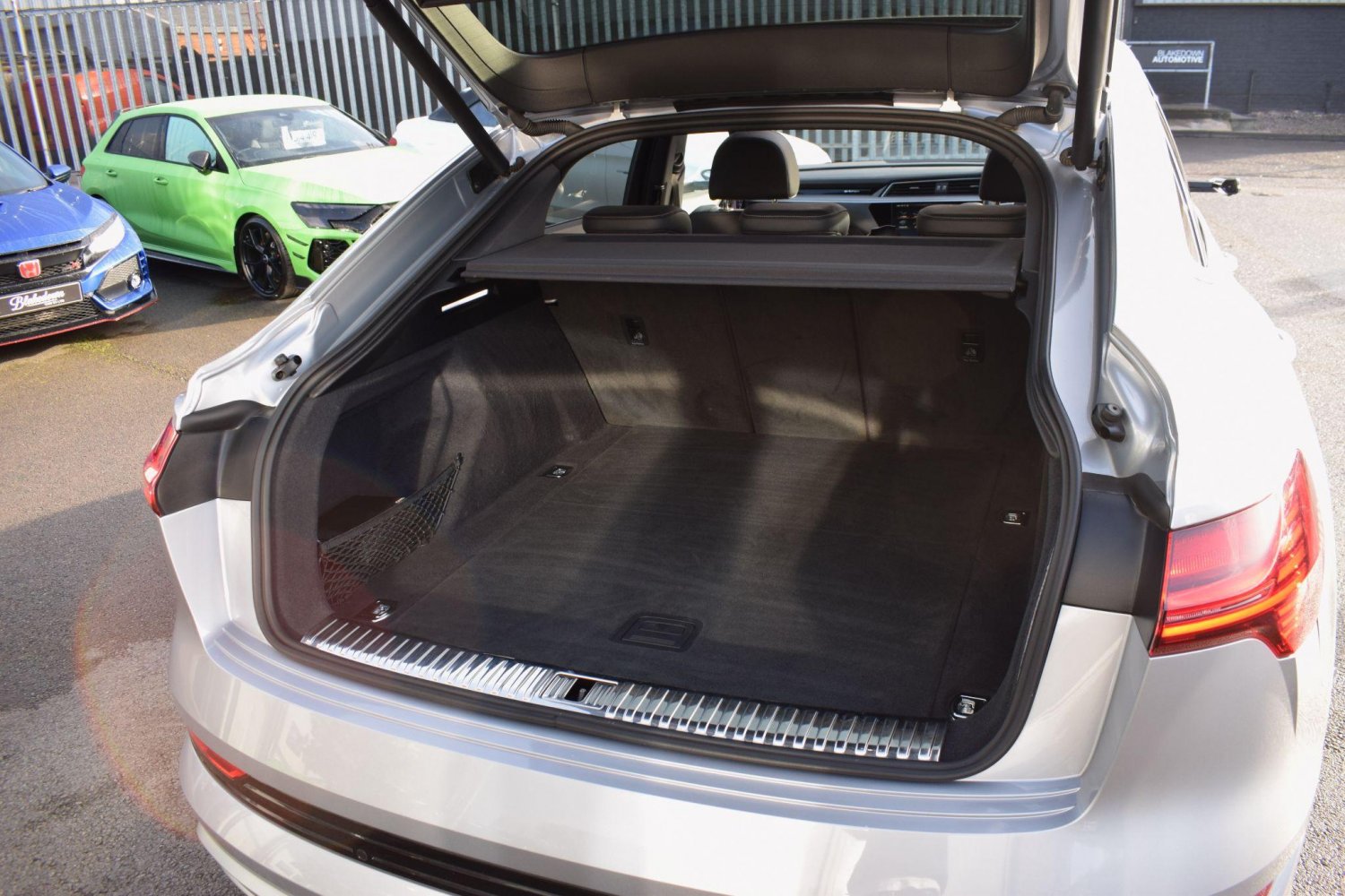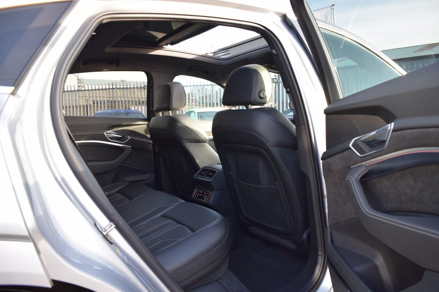 11 kW Onboard Charger, 2-Zone Automatic Air Conditioning, 21in Alloy Wheels - 9.5J 5-Arm Turbine Contrasting Grey Design, 3-Spoke Sport Multi-Function Steering Wheel in Perforated Leather with S Logo with Paddles for Recuperation, 4-Way Lumbar Support for Front Seats, ABS - Anti-Lock Braking System, AC and DC Charging Access Point on Drivers Side and Second AC Charging Access Point on Passenger Side, AMI - Audi Music Interface, Adaptive Air Sport Suspension, Anti-Theft Alarm, Anti-Theft Wheel Bolts and Wheel Loosening Warning, Audi Connect, Audi Connect Safety and Service - e-call, Audi Drive Select, Audi Matrix LED Headlights with Dynamic Front and Rear Indicators, Audi Phone Box with Wireless Charging, Audi Pre-Sense Front, Audi Smartphone Interface, Audi Sound System, Audi Virtual Cockpit, Auto Dimming and Frameless Rear View Mirror, Body Coloured Bumpers, Cloth Headlining in Black, Comfort Centre Armrest - Front, Compact e-tron Charging System, Cruise Control with Speed Limiter, DAB Digital Radio, Driver - Front Passenger - Front Side and Head Airbags, Electric Windows - Front and Rear, Electrically Adjustable Front Seats with Memory Function for Drivers Side, Extended Twin Leather Pack, Exterior Mirror Housings in Body Colour, Exterior Mirrors - Electrically Adjustable - Heated and Folding - Automatically Dimming on Both Sides with Memory Function - Including Automatic Kerb-side Function for the Passenger-side Exterior Mirror, First Aid Kit and Warning Triangle, Front Sun Visors with Illuminated Vanity Mirrors, Front and Rear Floor Mats, Gloss Styling Pack, Heated Front Seats, Household Plug Type G - GB, ISOFIX Child Seat Mounting for Front Passenger with Airbag Deactivation, ISOFIX Child Seat Mounting for Outer Rear Seats, Illuminated Door Sill Trims with Aluminium Inlays - Front and Rear with S Logo in Front, Industry Plug CEE 16 A-400 V-6 h-Long and Straight, Inlays - Darkened Matt Brushed Aluminium, Keyless Go, LED Interior Light Package, LED Rear Lights, Lane Departure Warning, Luggage Compartment Cover, MMI Navigation Plus with MMI Touch - Twin Touch Screens with Haptic Feedback, Mode 3 Type 2-AC Charging Cable 22kW, Operating Buttons in Black - Glass Look with Haptic Feedback, Parking System Plus with 360 Degree Sensors and Function-On-Demand Preparation, Power Operated Tailgate, Pre-Sense Basic, Privacy Glass - Rear and Rear-Side Windows, Progressive Steering, Rear Boot Lid Spoiler, Rear View Camera, S Line Badges on the Front Wing Panels, S Line Front and Rear Bumpers, S line Rear Diffuser, Tool Kit, Vehicle Inlet Combo 2 - EU CCS