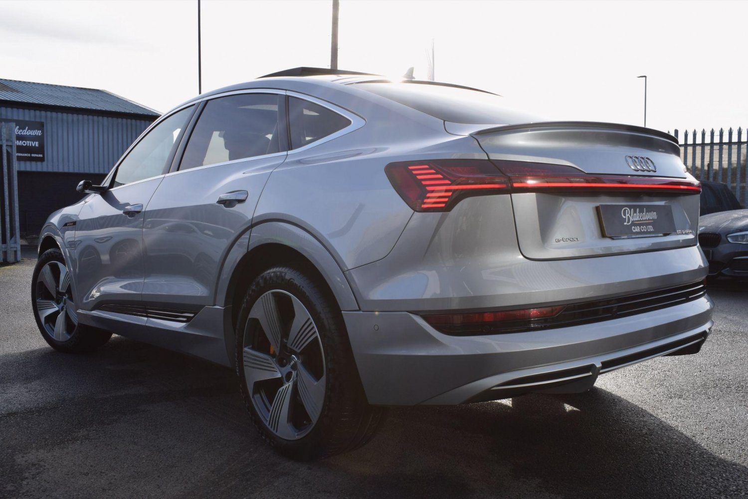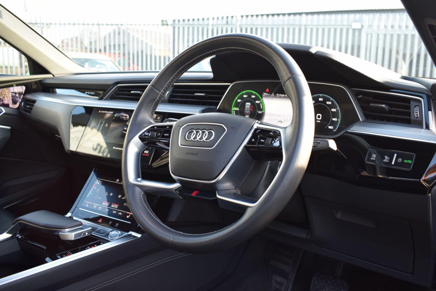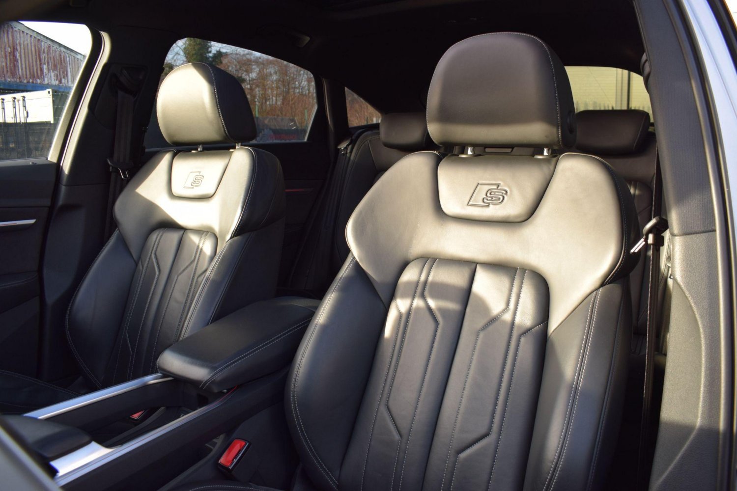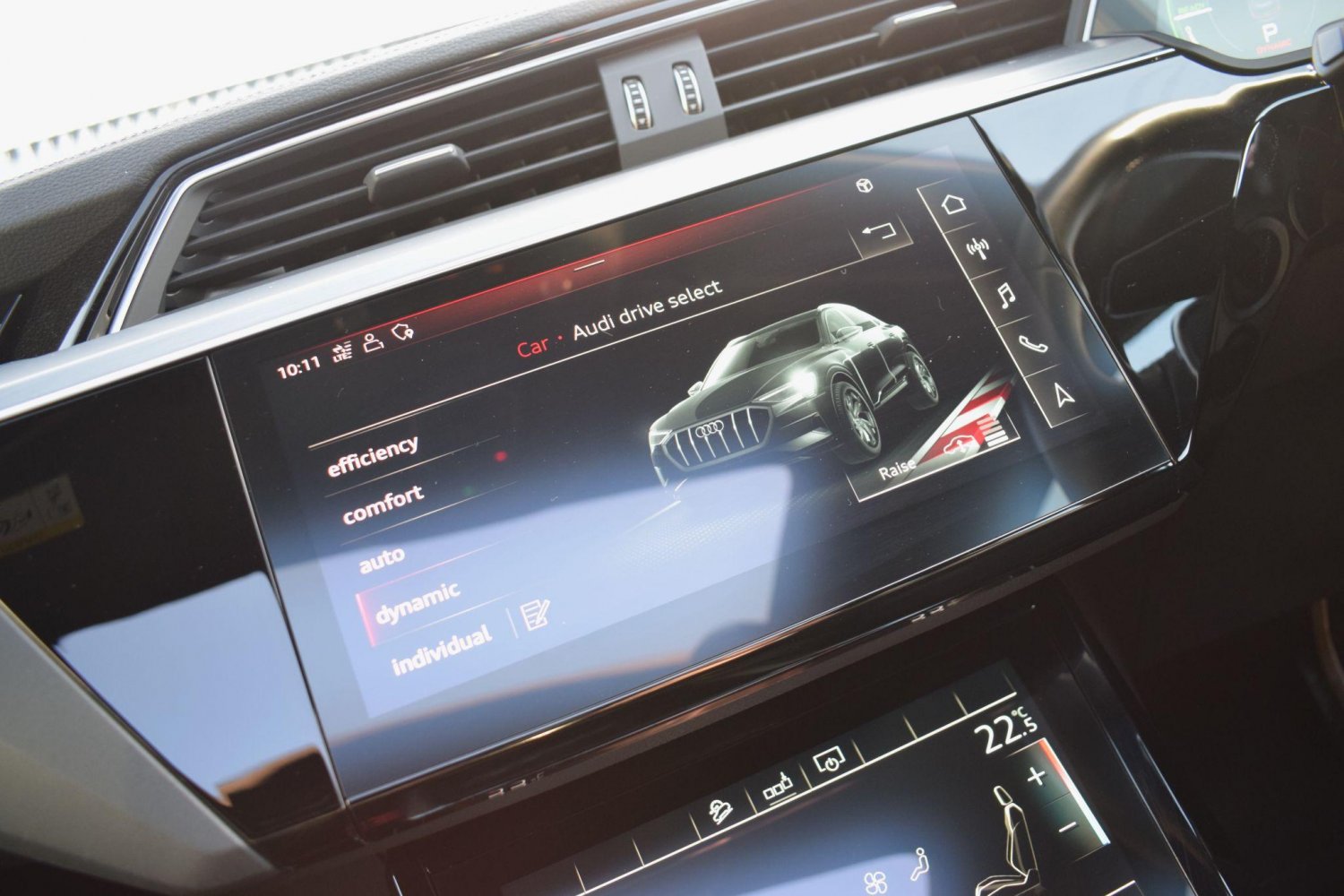 11 kW Onboard Charger, 2-Zone Automatic Air Conditioning, 21in Alloy Wheels - 9.5J 5-Arm Turbine Contrasting Grey Design, 3-Spoke Sport Multi-Function Steering Wheel in Perforated Leather with S Logo with Paddles for Recuperation, 4-Way Lumbar Support for Front Seats, ABS - Anti-Lock Braking System, AC and DC Charging Access Point on Drivers Side and Second AC Charging Access Point on Passenger Side, AMI - Audi Music Interface, Adaptive Air Sport Suspension, Anti-Theft Alarm, Anti-Theft Wheel Bolts and Wheel Loosening Warning, Audi Connect, Audi Connect Safety and Service - e-call, Audi Drive Select, Audi Matrix LED Headlights with Dynamic Front and Rear Indicators, Audi Phone Box with Wireless Charging, Audi Pre-Sense Front, Audi Smartphone Interface, Audi Sound System, Audi Virtual Cockpit, Auto Dimming and Frameless Rear View Mirror, Body Coloured Bumpers, Cloth Headlining in Black, Comfort Centre Armrest - Front, Compact e-tron Charging System, Cruise Control with Speed Limiter, DAB Digital Radio, Driver - Front Passenger - Front Side and Head Airbags, Electric Windows - Front and Rear, Electrically Adjustable Front Seats with Memory Function for Drivers Side, Extended Twin Leather Pack, Exterior Mirror Housings in Body Colour, Exterior Mirrors - Electrically Adjustable - Heated and Folding - Automatically Dimming on Both Sides with Memory Function - Including Automatic Kerb-side Function for the Passenger-side Exterior Mirror, First Aid Kit and Warning Triangle, Front Sun Visors with Illuminated Vanity Mirrors, Front and Rear Floor Mats, Gloss Styling Pack, Heated Front Seats, Household Plug Type G - GB, ISOFIX Child Seat Mounting for Front Passenger with Airbag Deactivation, ISOFIX Child Seat Mounting for Outer Rear Seats, Illuminated Door Sill Trims with Aluminium Inlays - Front and Rear with S Logo in Front, Industry Plug CEE 16 A-400 V-6 h-Long and Straight, Inlays - Darkened Matt Brushed Aluminium, Keyless Go, LED Interior Light Package, LED Rear Lights, Lane Departure Warning, Luggage Compartment Cover, MMI Navigation Plus with MMI Touch - Twin Touch Screens with Haptic Feedback, Mode 3 Type 2-AC Charging Cable 22kW, Operating Buttons in Black - Glass Look with Haptic Feedback, Parking System Plus with 360 Degree Sensors and Function-On-Demand Preparation, Power Operated Tailgate, Pre-Sense Basic, Privacy Glass - Rear and Rear-Side Windows, Progressive Steering, Rear Boot Lid Spoiler, Rear View Camera, S Line Badges on the Front Wing Panels, S Line Front and Rear Bumpers, S line Rear Diffuser, Tool Kit, Vehicle Inlet Combo 2 - EU CCS
