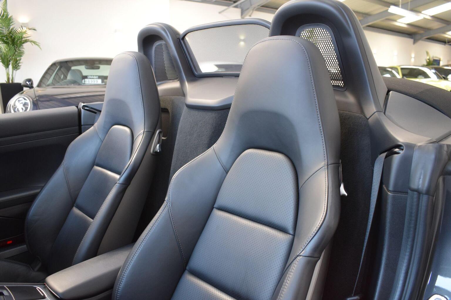 19in Alloy Wheels - Boxster S, 7in Colour Display, ABD - Automatic Brake Differential, ABS - Anti-lock Brake System, ASR - Anti Slip Regulation, Airbag - Driver, Airbag - Head, Airbag - Passenger, Airbag - Thorax in Seat Side Bolsters, Alarm System, Auto-Deployed Rear Spoiler, Automatic Air Conditioning, Bi-Xenon Headlights, Brake Calipers - Red, Brake Pad Wear Monitoring on Each Brake Caliper, CDR Audio System, Central Locking with Remote Control, Cupholders, Daytime Running Lights - LED, Door Mirrors - Electrically Adjustable and Heated, Driving Light Assistant Including Automatic Coming Home Lights, Electric Luggage Compartment Locking Front and Rear, Electric Windows - Lifts with One Touch Operation, Enhanced Porsche Stability Management - PSM, Extended Head Restraints Integrated into the Front Seats, Floor Mats, Footwell Illumination, Fully Electrically Operated Hood, Gear Indicator in Rev Counter, Green Tinted Heat-Insulating Glass, Hill-Start Assist, On-Board Computer, Orientation Lighting and Reading Light in Cabin, Porsche Side Impact Protection - POSIP, Power Assisted Steering with Variable Steering Ratio, Sport Button on the Centre Console, Sports Steering Wheel with Manual Fore-Aft and Height Adjustment, Steering Wheel - Rim - Gear Lever and Door Handles Covered in Leather in Interior Colour, Tailights - LED, Tyre Sealing Compound and Electric Air Compressor, Universal Audio Interface - AUX, Windscreen Washer System with Two Wiper Speeds and Heated Washer Jets, Windscreen with Grey Top-Tint, Glove Compartment - Lockable
